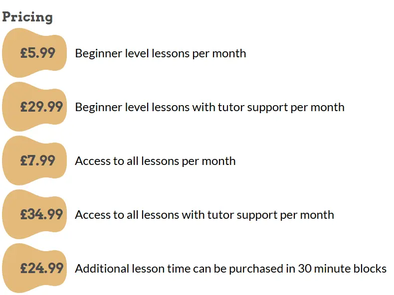 If you just want access to recorded lessons without any tutor support or you would prefer regular guidance and review of your progress that's ok. We have packages to suit your needs.